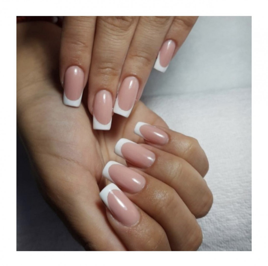 Izlivanje noktiju, srednja dužina, pink baza i french.