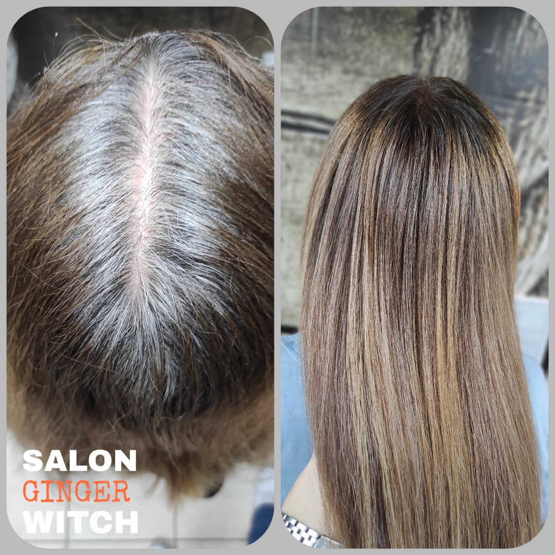 Farbanje izrastka + feniranje - duga kosa