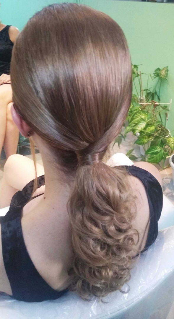 Lokne na kupu i pricvršćena kosa "u rep" Lokne na kupu - duga kosa bez pranja U cenu usluge ne ulazi pranje kose, već se dodatno zakazuje i naplaćuje.